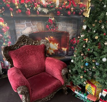 No visit is complete without Santa's favorite chair. A custom gilded comfortable chair worthy of Santa Claus. with it's wide cushioned and sturdy arms, it makes the perfect spot for children and adults alike to sit and snuggle up close to Santa, telling him of their dreams and how good they have been this year. A must have for incredible photos..